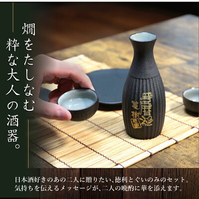 徳利 ぐい呑み セット 名入れ 【 鉄灰酒盃 - 感謝 - 】 ぐい飲み お猪口 メッセージ 誕生日プレゼント プレゼント 日本酒 熱燗 とっくり おちょこ お酒 おじいちゃん 父親 母親 夫婦 還暦祝い 古希 退職祝い 定年退職 結婚記念日 お祝い 記念日 送料無料 翌々営業日出荷
